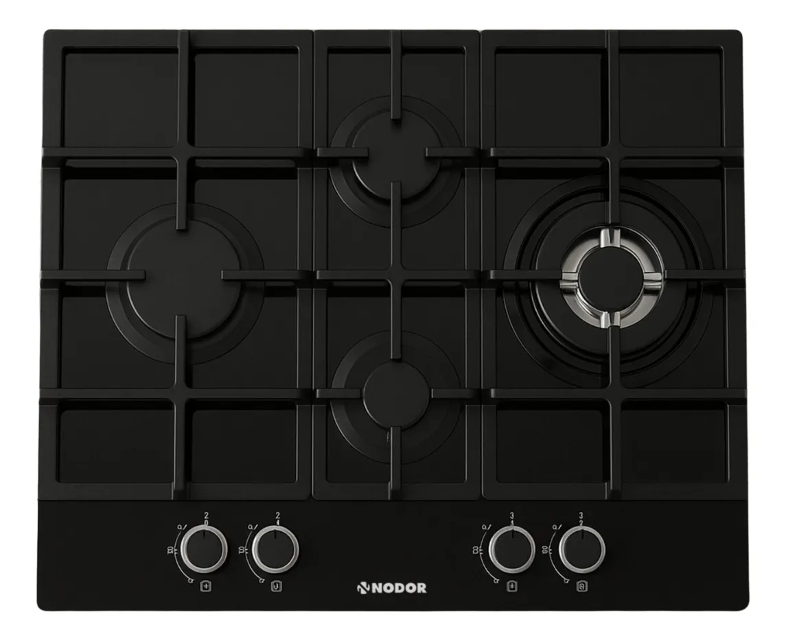 Anafe Nodor Gas De Vidrio Templado Negro 60 Cm Negro