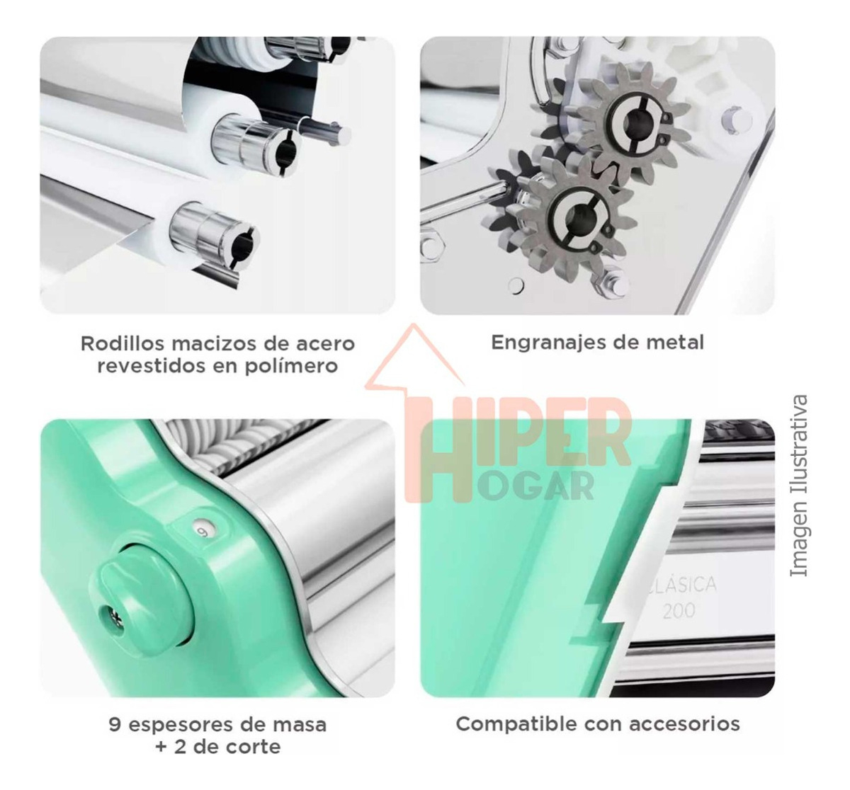 Fácil de usar, confortable, de elegante diseño y mayor tamaño permite preparar mayor cantidad de pasta en menor tiempo. Ideal para hojas de lasagna, ravioles, cappeletti, spaghetti, palitos de copetín y canelones.